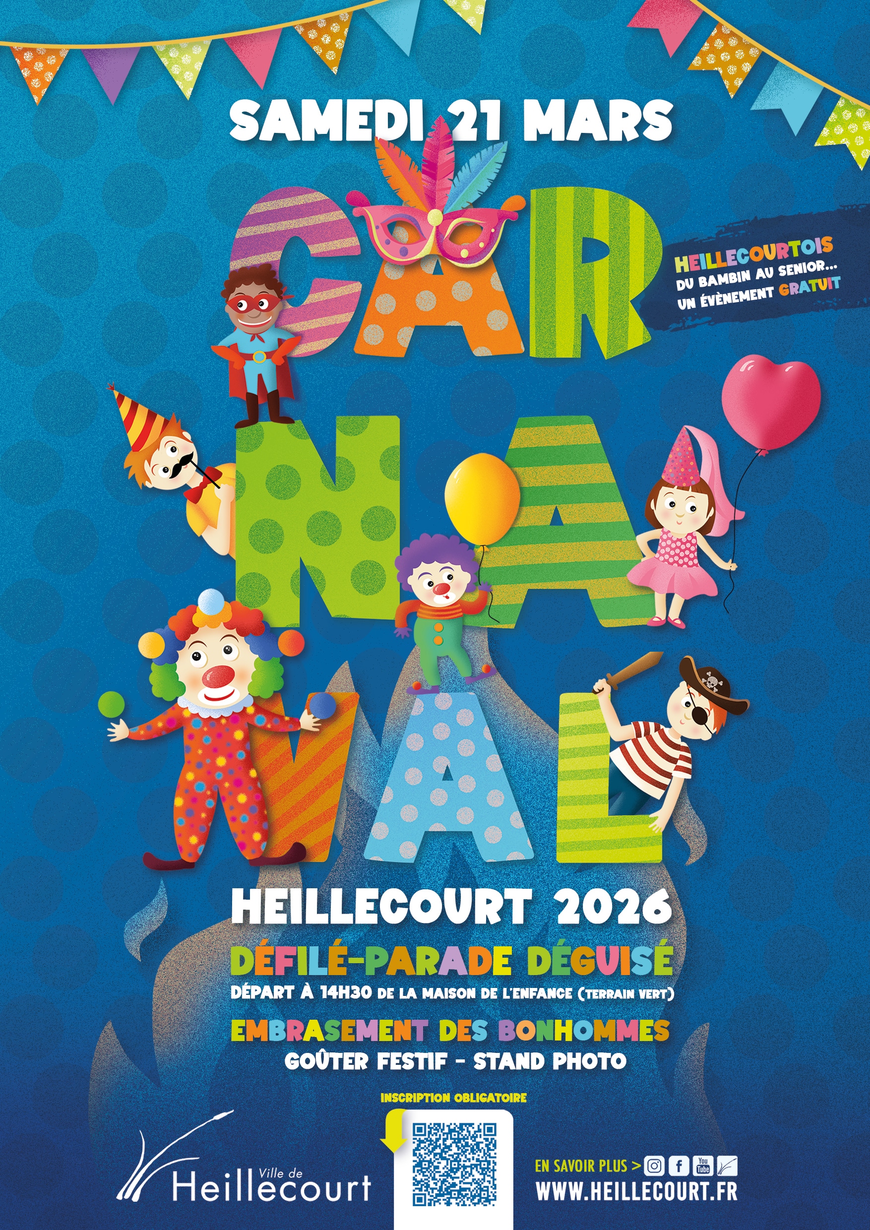 Pour célébrer l’arrivée du printemps, la ville organise un après-midi déguisé. Enfants, parents, grands-parents, nounous sont invités à se rassembler pour le grand défilé. Lors de la parade, les enfants seront placés sous la responsabilité de leurs parents. Le défilé sera suivi de l’embrasement d’une dizaine de bonhommes de carnaval et d’un goûter (1 beignet offert par personne déguisée).